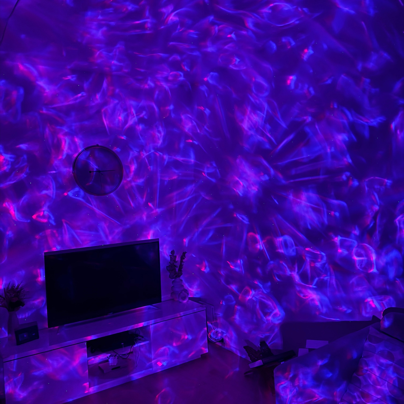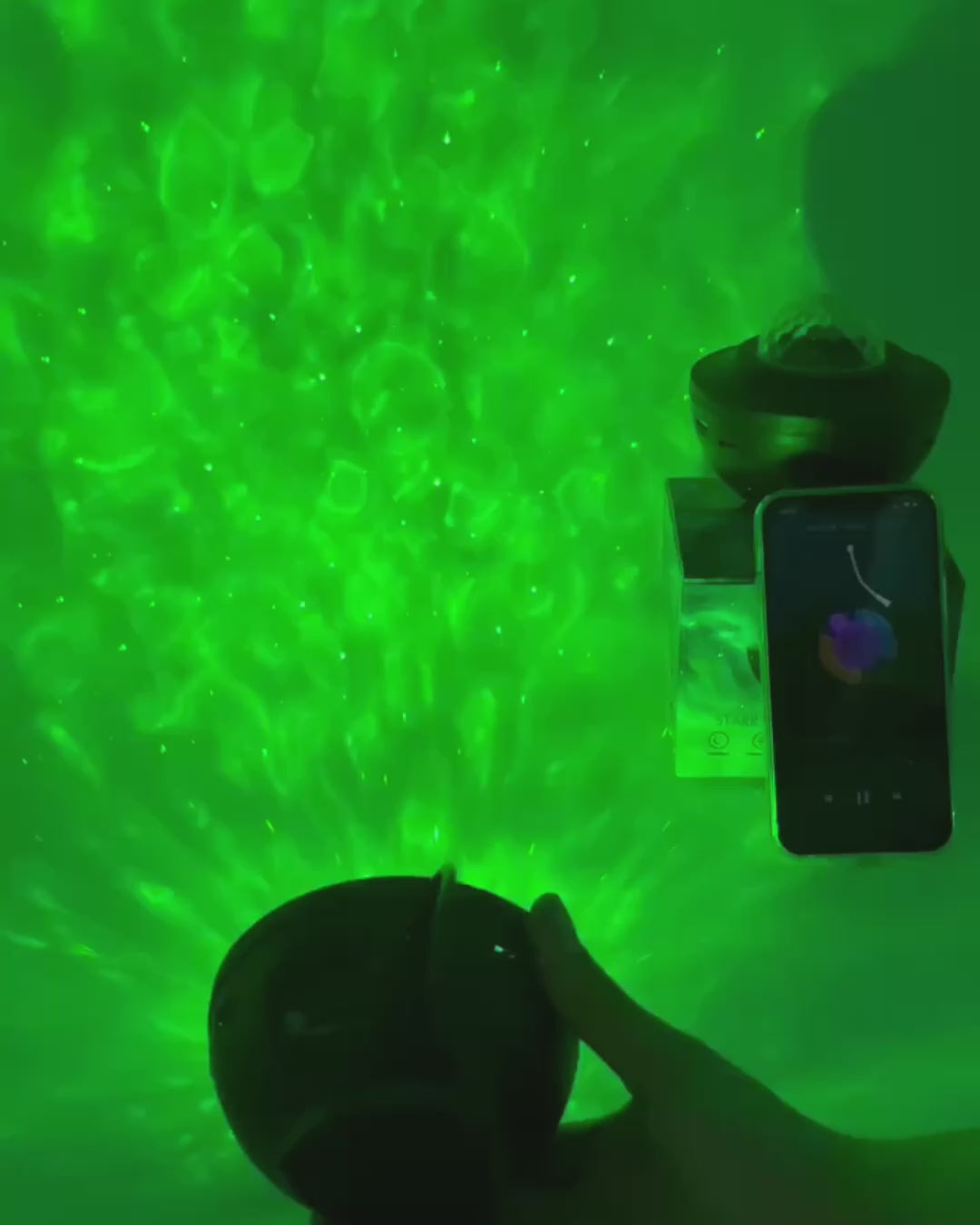 Opsætningen tager under to minutter – tænd, læn dig tilbage, og lad rummet blive badet i en fortryllende kosmisk glød 🔮, der breder sig elegant langs vægge og loft.
